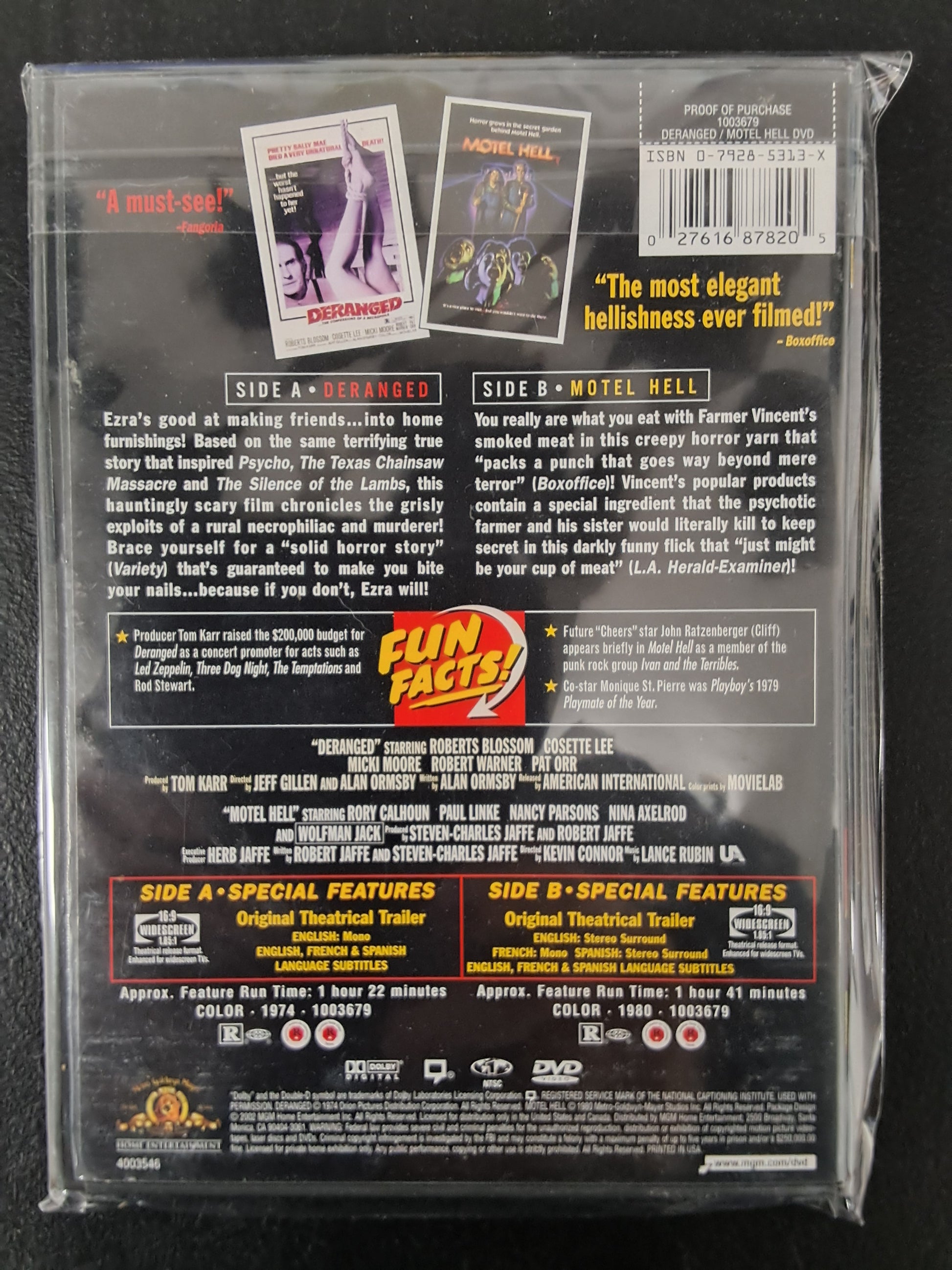 New Other Copy of Midnight Movies Double Feature Deranged/Motel Hell on DVD format